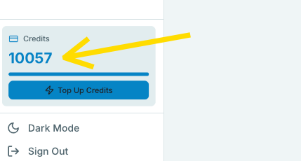 Need to top up on credits? Click here or click the "Top Up Credits" button under the large number. (IMPORTANT: An active subscription is REQUIRED or Top-Ups will NOT apply to your account.)